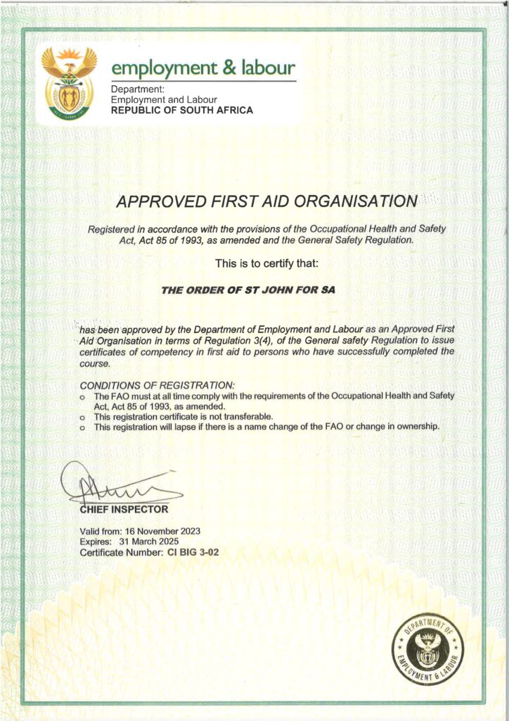 As an approved first aid training organsation, our training specifically complies with the Occupational Health and Safety Act, making our courses ideal for organisations aiming to meet statutory workplace requirements.