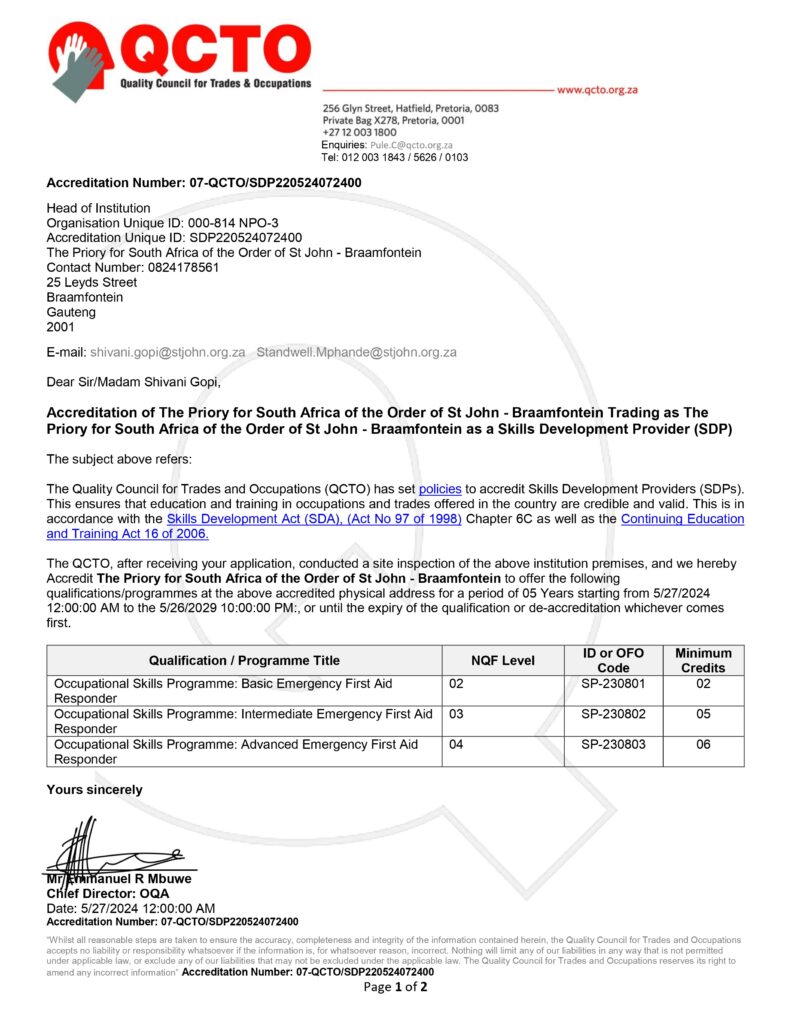 All our occupational and first aid courses are aligned with the Quality Council for Trades and Occupations (QCTO) and relevant Sector Education and Training Authorities (SETA)—including TETA and HWSETA. This ensures that our programmes meet national educational standards and offer real workplace value.